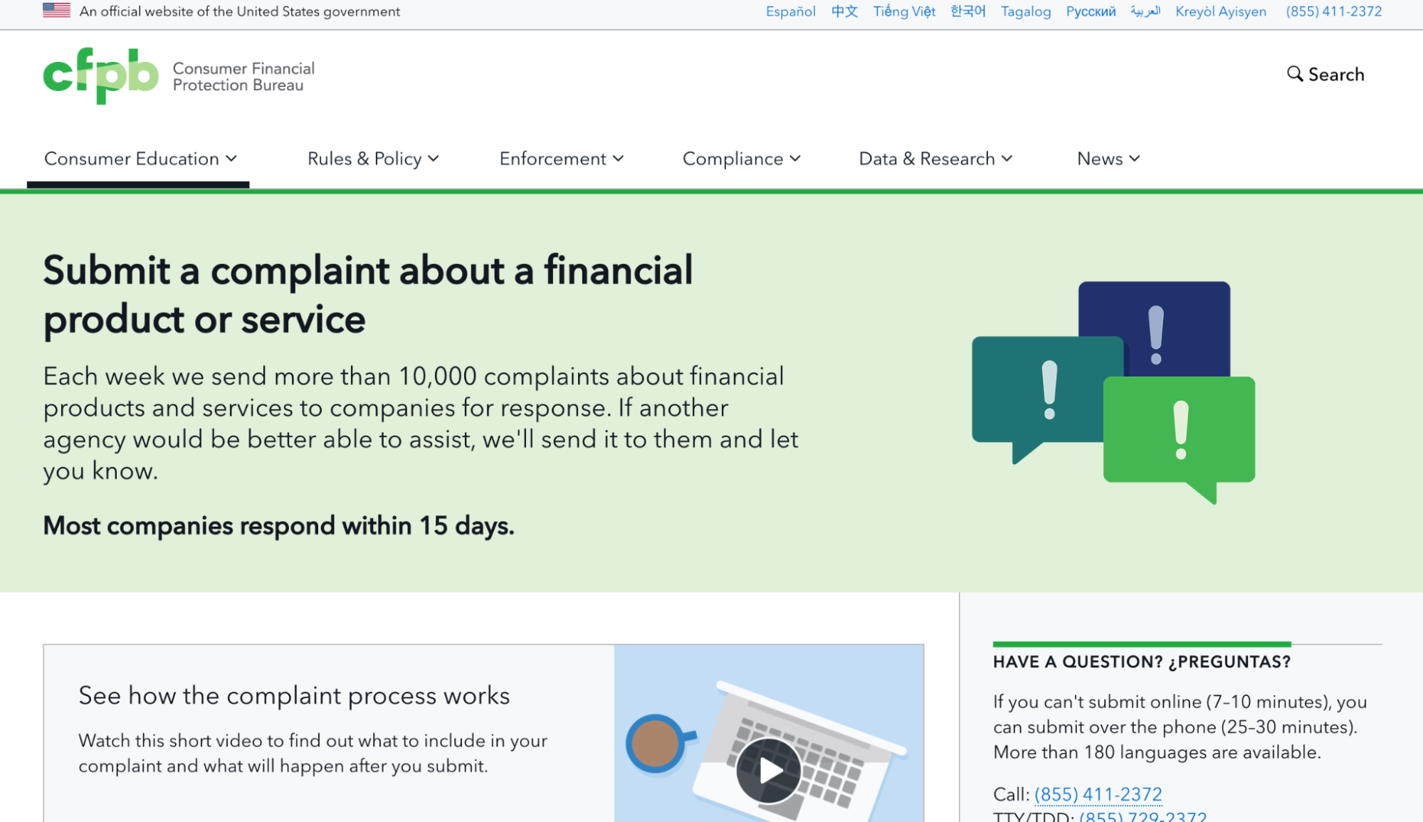 File A Complaint Against Any Financial Service Companies Here For Action In 14 Days